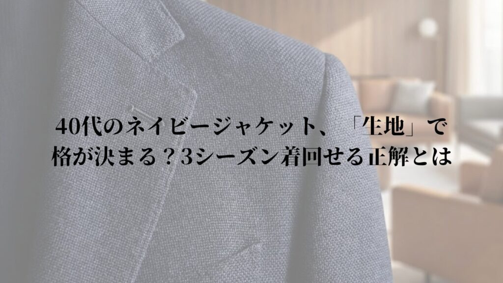 40代のネイビージャケット、実は「生地」で格が決まる?3シーズン着回せる正解とは