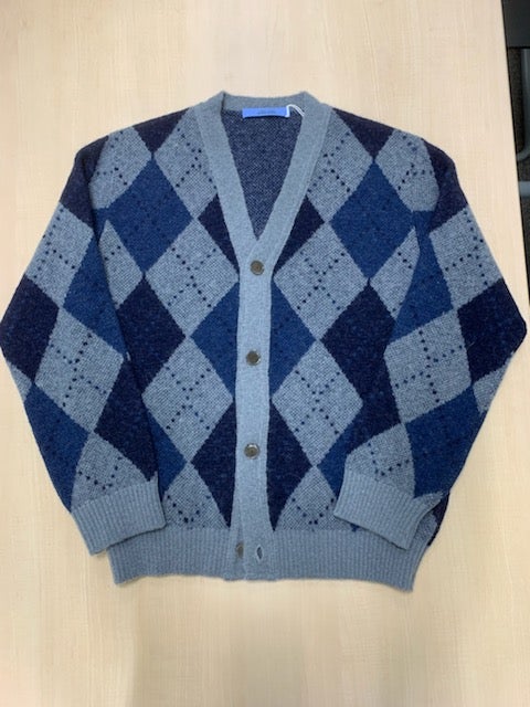 伝統的なアーガイル柄ながら、深いブルーとグレーの組み合わせが派手すぎず、大人の遊び心を演出してくれます。