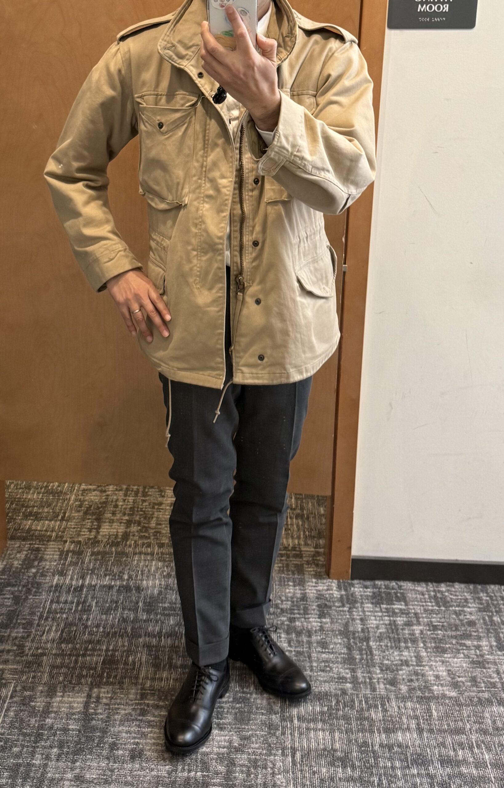 「いかにもミリタリーっぽくない」ベージュのM65は、40代の大人が秋に選ぶべきライトアウターとして、自信を持っておすすめできる一着です。