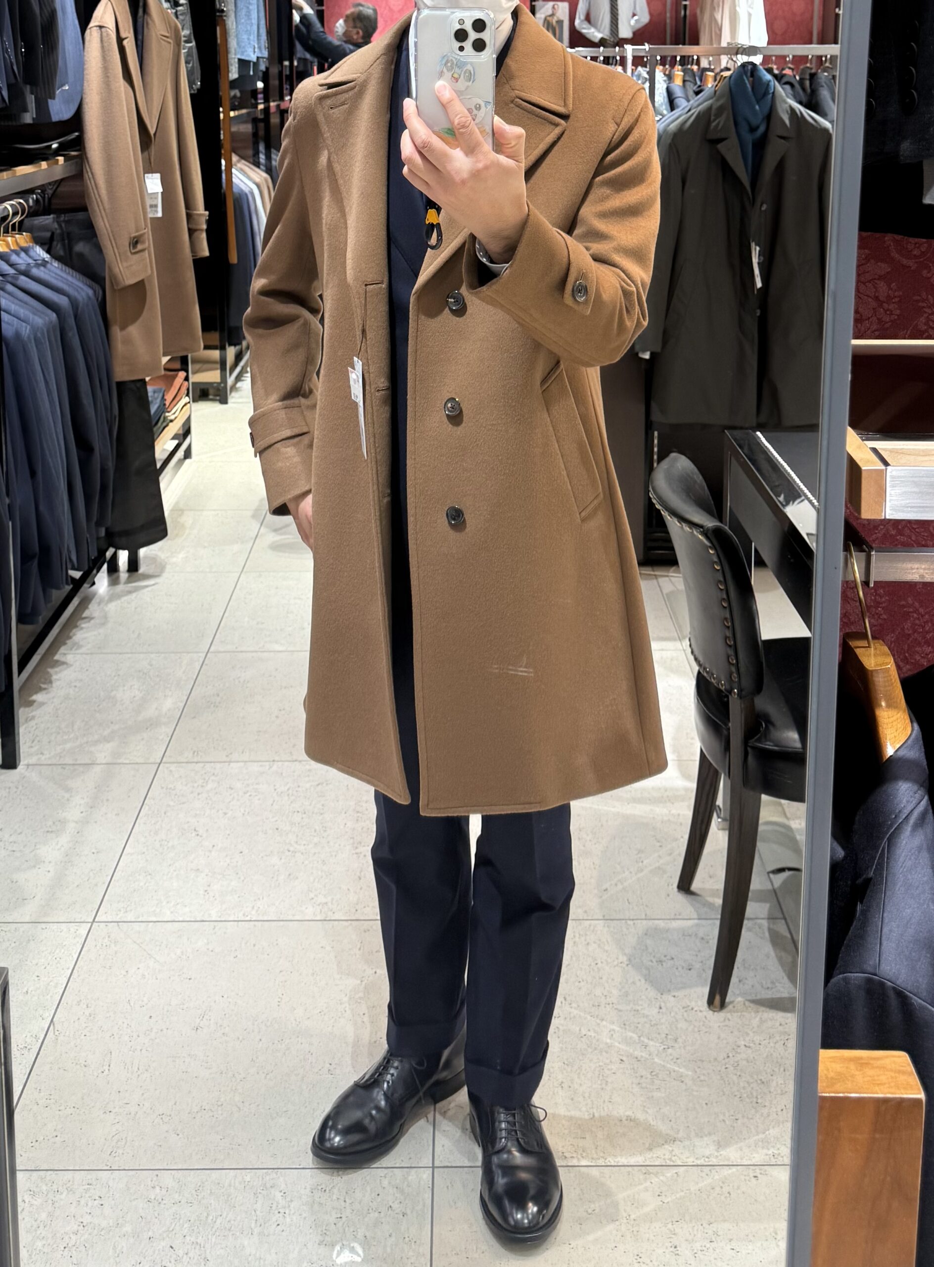 周囲が黒やネイビーのコートを選ぶ中、あえて「ベージュのトレンチコート」や「ブラウンのチェスターコート」を選ぶ。