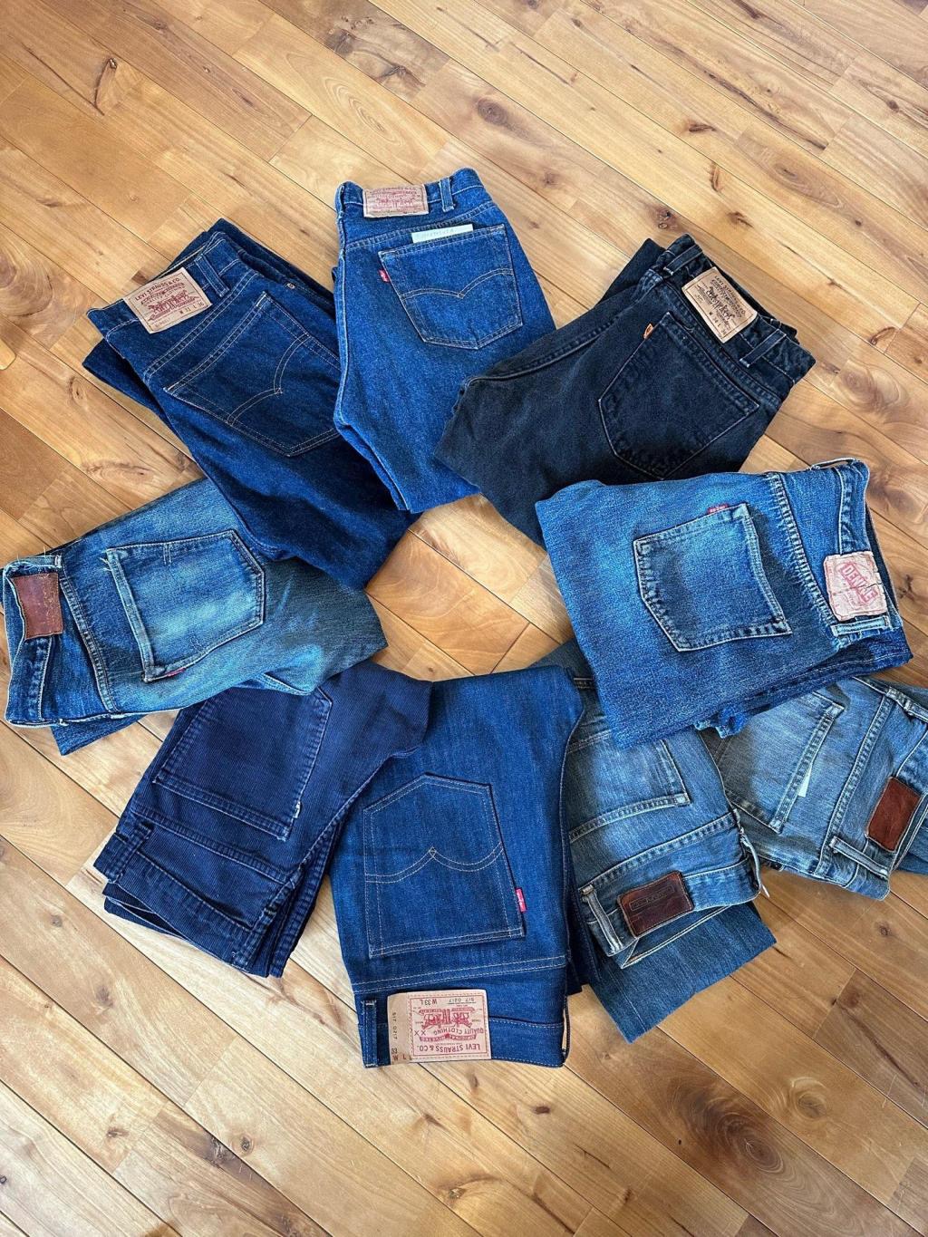 僕のクローゼットにも、数本の501が並んでいます。(写真は私のデニムコレクションの一部です)