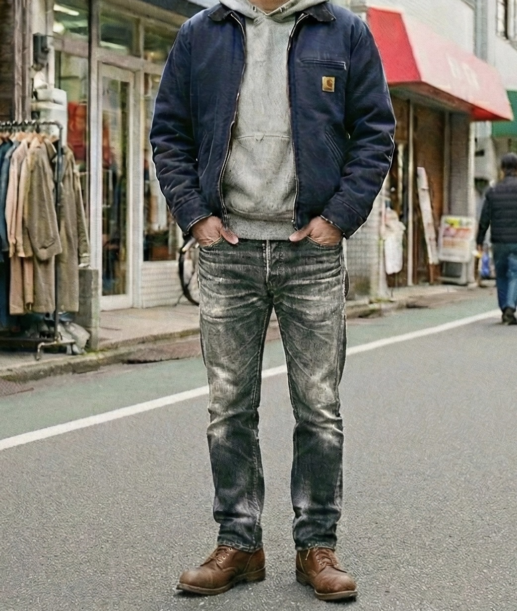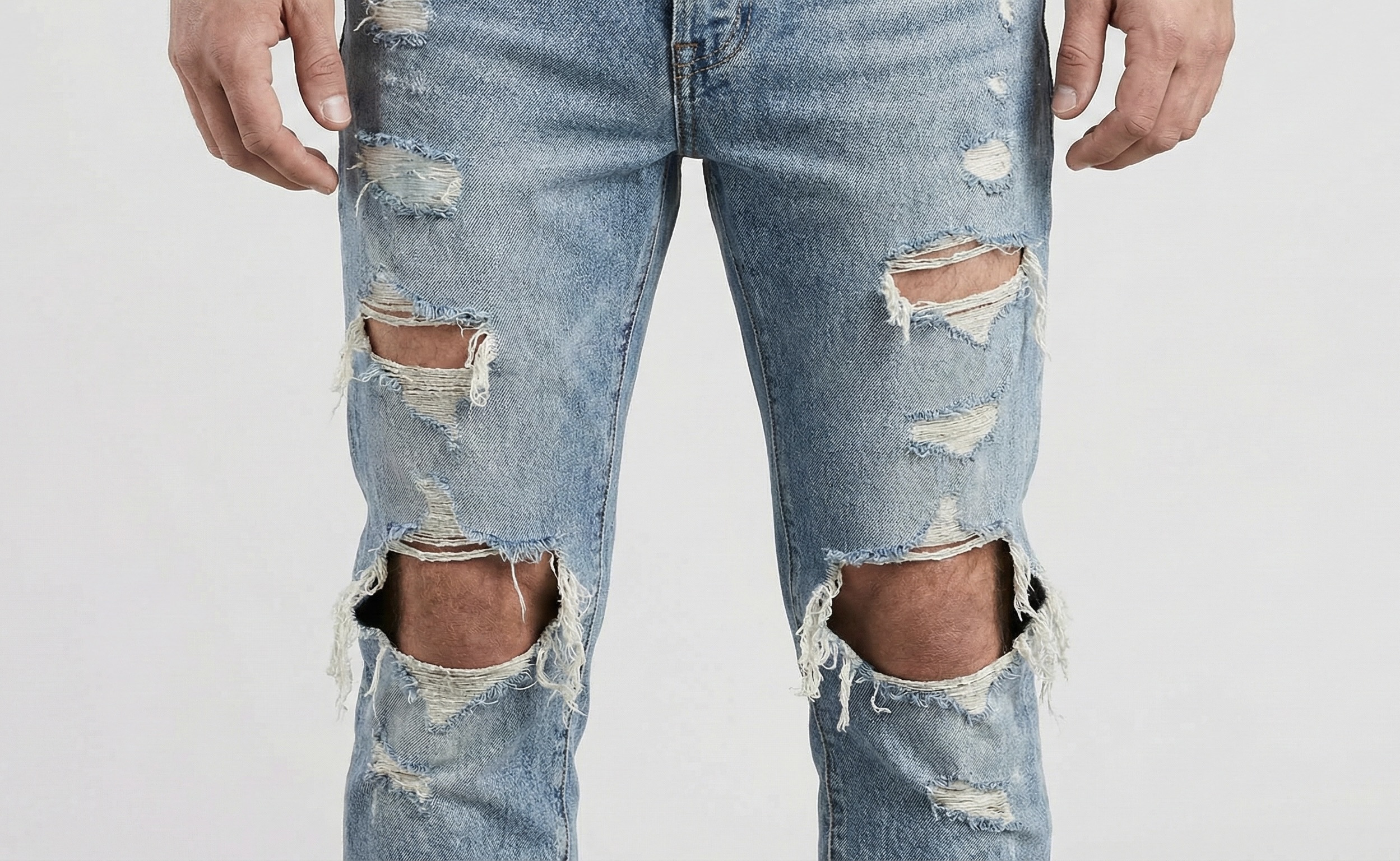 写真ほどのダメージデニムは流石にあまりいませんが、実は私の周りにも、かなり激しく色落ちしたデニムを履き続けている人が多いです。