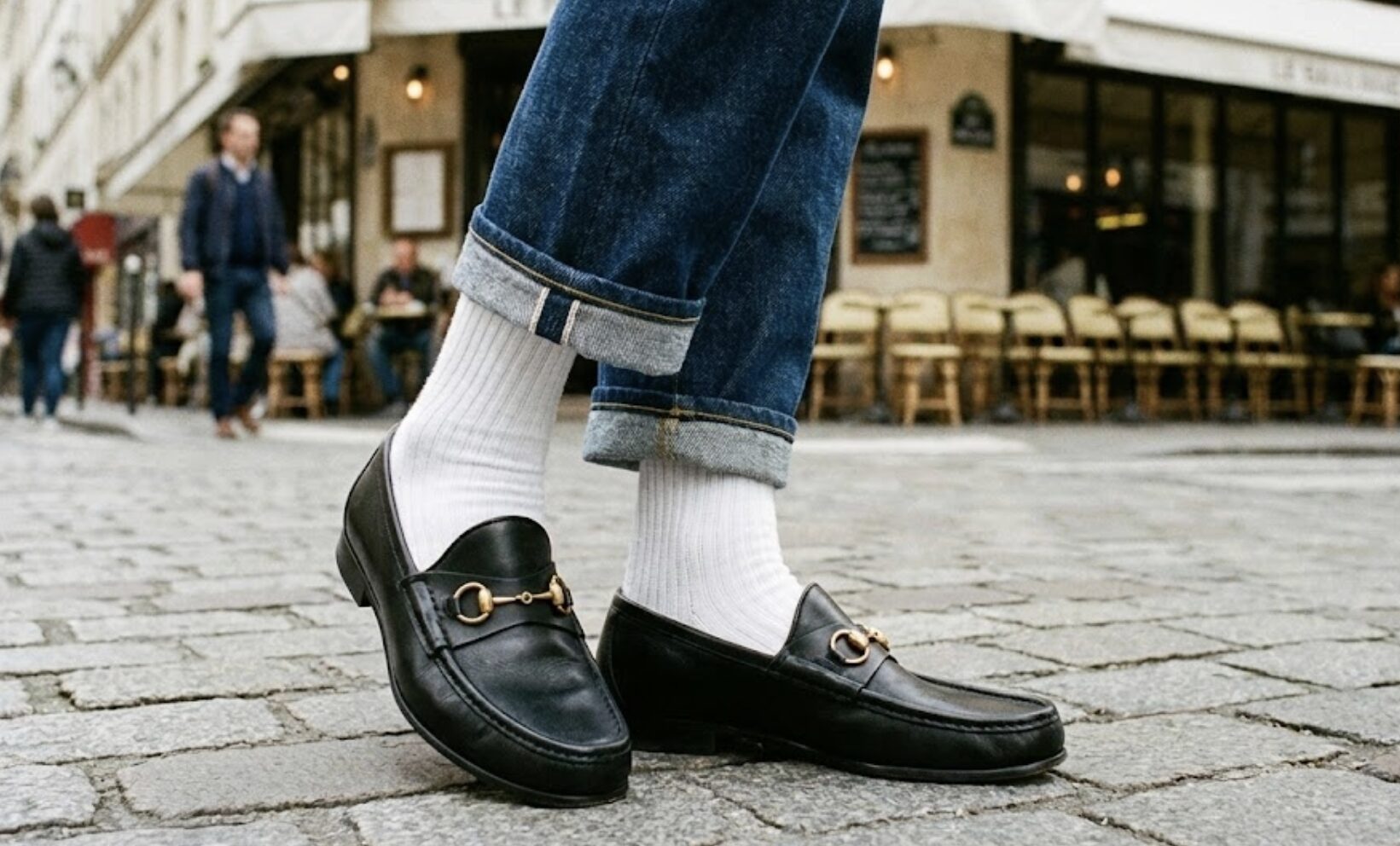 ファッション誌を見ると、Gucciのローファーに「白ソックス」を合わせているスナップをよく見かけます。
