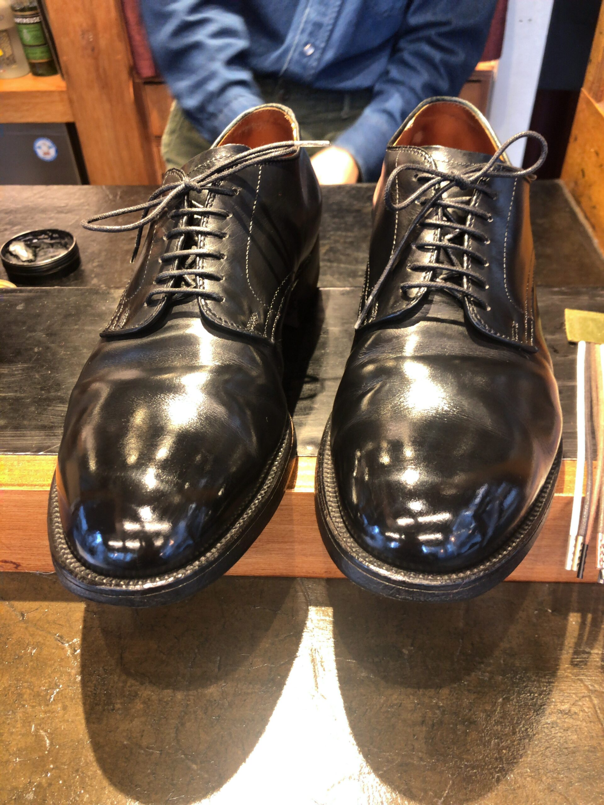 かなり細身なので、最初は少しタイトに感じましたが、履き込むうちにコードバン(馬の革)が自分の足の形に馴染んで、自分だけの一足になっていくのが楽しいです。 - 見た目のポイント: