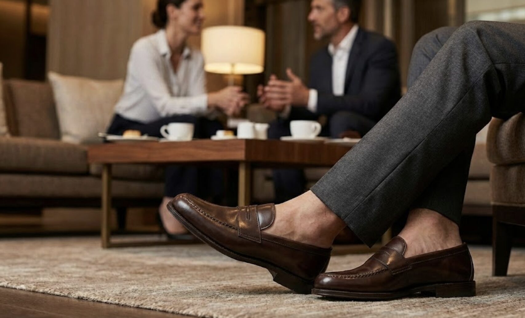 少しリラックスした会議や、 仲を深めたいお客様との会食には、 茶色の「ローファー」がぴったりです。
