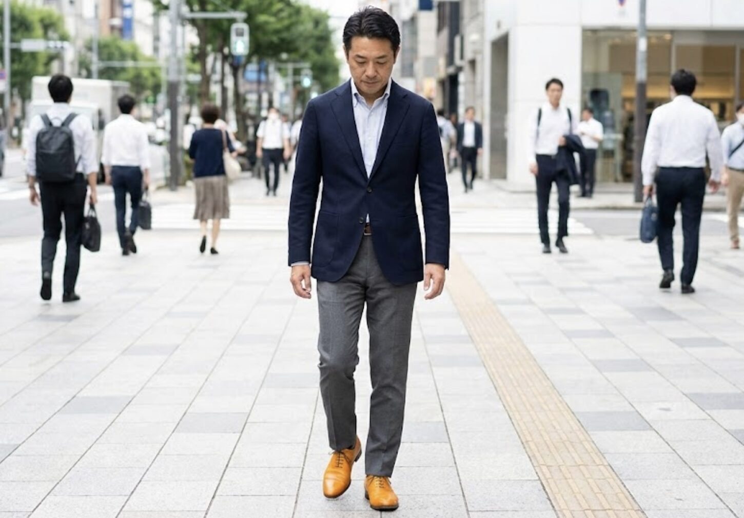 今回は、黒髪のビジネスマンが「茶靴」を履く際、足元だけが浮いて「頑張っている感」が出ないようにするための、論理的な調整の仕組みをお伝えします。
