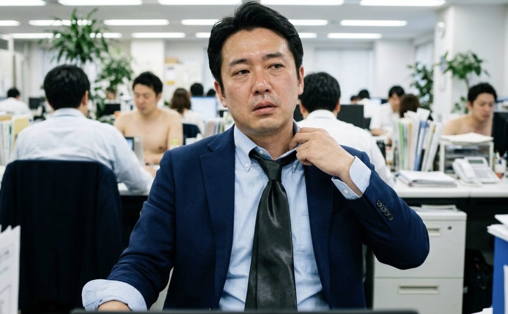 「ネクタイだけが真冬と同じ、分厚くてツヤツヤのシルクタイ」