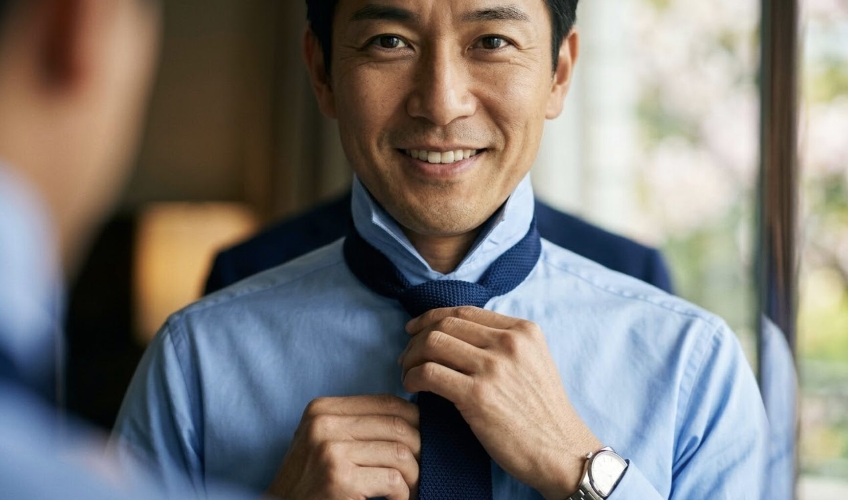 今回は、手持ちのネイビージャケットとサックスブルーシャツの魅力を120%引き出し、春のVゾーンを完璧に完成させる「フレスコタイ」ついて、具体的にお話しします。