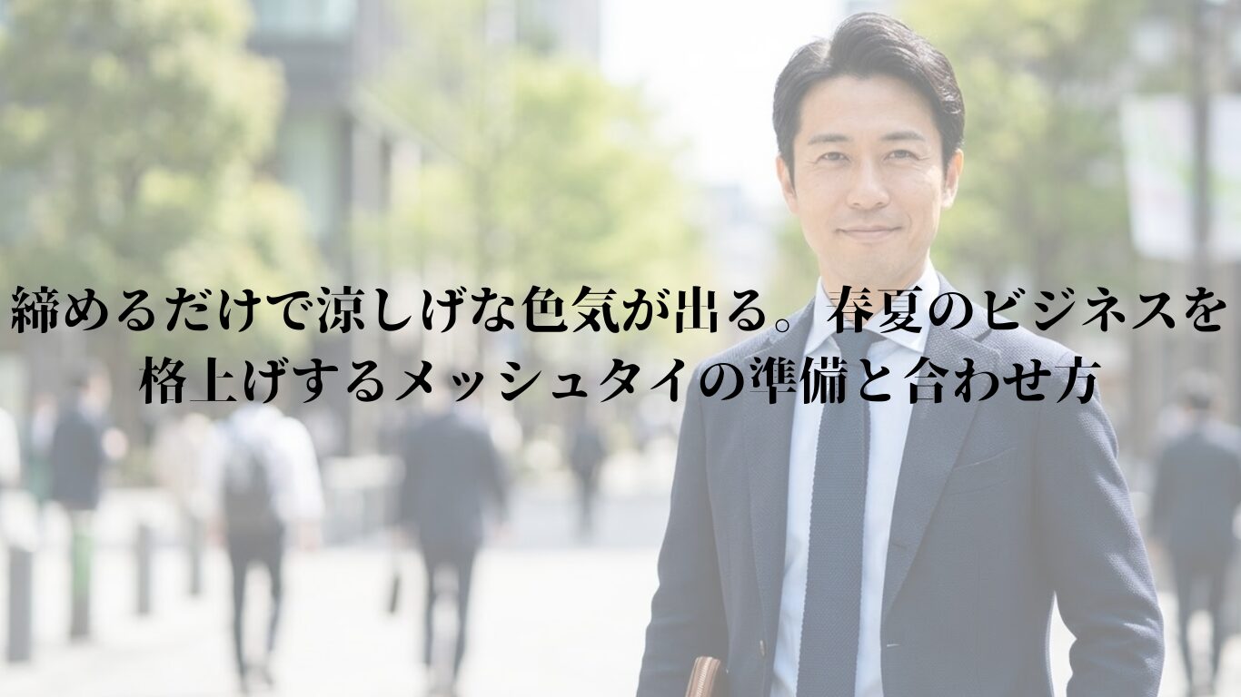 締めるだけで涼しげな色気が出る。春夏のビジネスを格上げするメッシュタイの準備と合わせ方