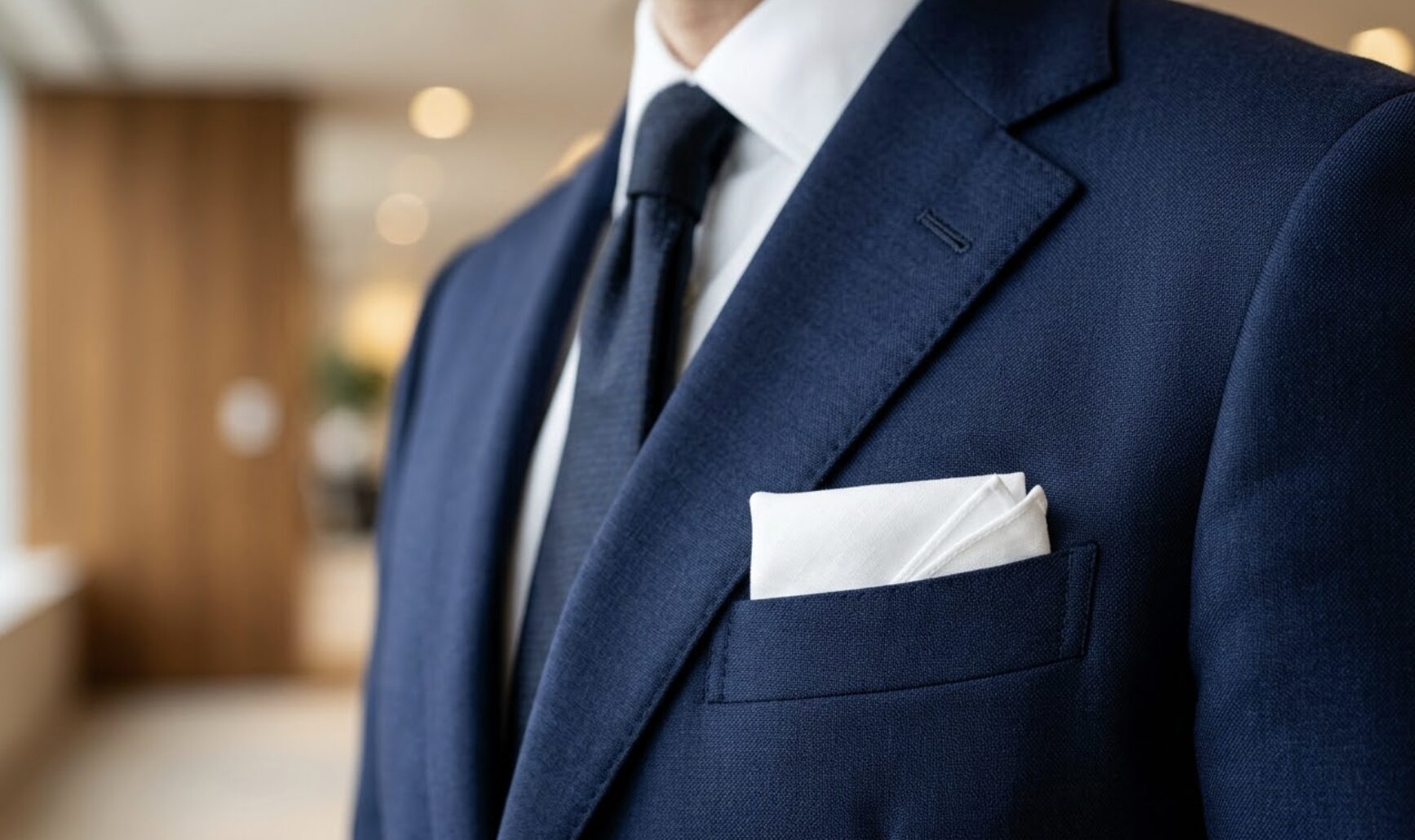 「いつも通りのきちんとしたネイビーの服」